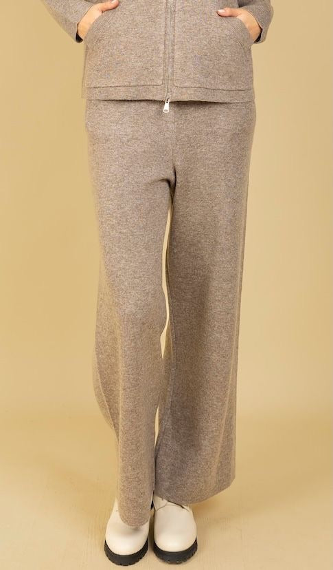 Col: Khaki, Heather Grey, Black Wool Blended Straight Leg Knit Sweatpants 50% Wool, 50% Acrylic