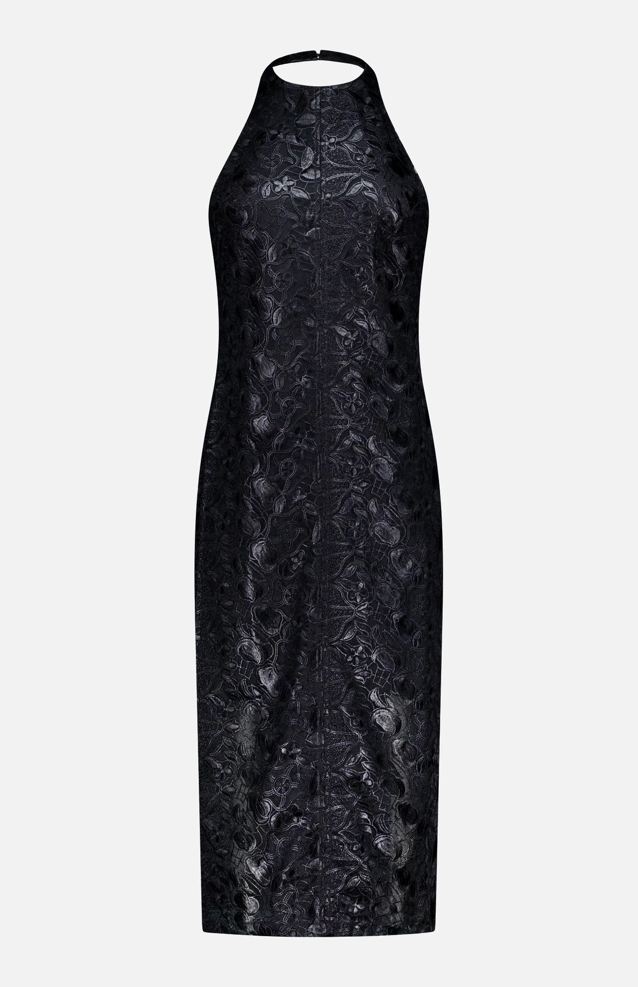 Walk through life with sensuality and strength. This black midi dress features a high neck and a figure-skimming fit that’s perfect for a night with the girls, house parties or vacation dinner. The intricate lace construction is feminine and textural so it’s a piece of art in your closet. Simply add heels, hoop earrings and your signature scent.