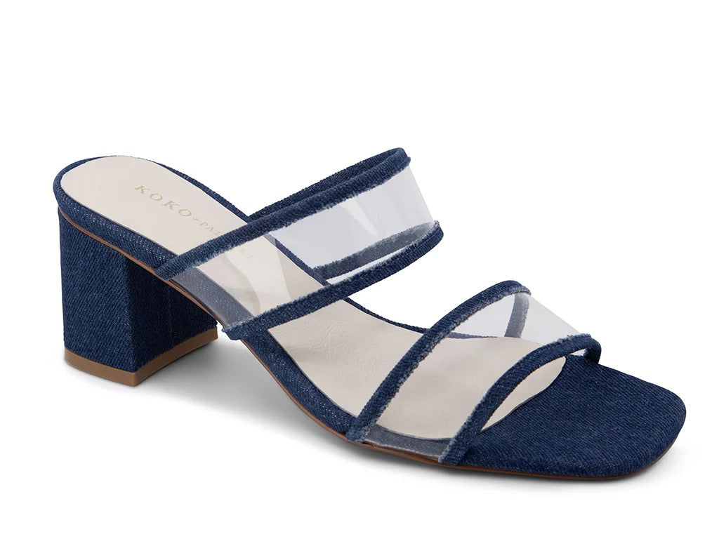 The Ghost sandal provides a mid-heel design with two clear bands for both comfort and style, boasting a 2 1/2" heel height and leather/PVC upper. Additionally, the sandal features a leather lining and padded insole, making it a comfortable and stylish choice.