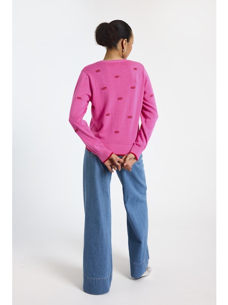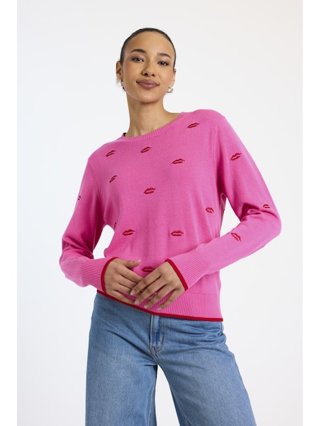 Leila Embroidered Lips Crew - Bubblegum/Tomato